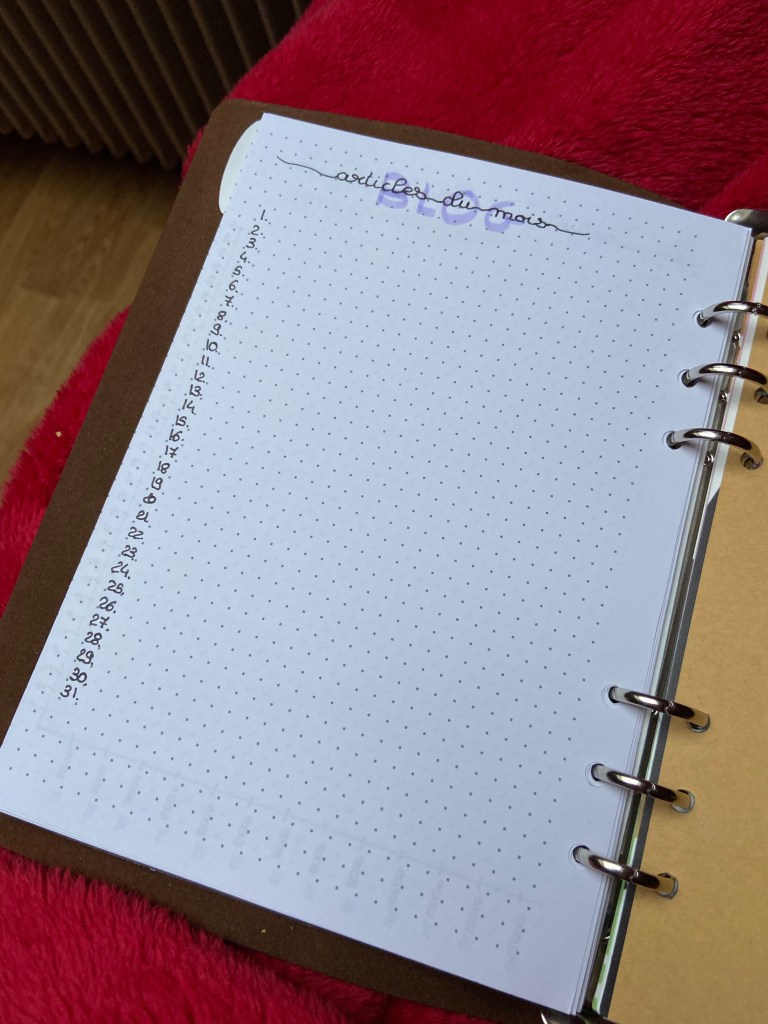 Par définition, il s’agit d’un classeur qui permet de planifier ses rendez-vous, ses journées. Mais surtout il s’agit d’un classeur et qui dit classeur dit possibilité de retirer, d’ajouter des feuilles autant qu’on le veut. Donc celui-là n’aura jamais plus de pages et je n’aurai pas à refaire toutes les pages tous les ans.