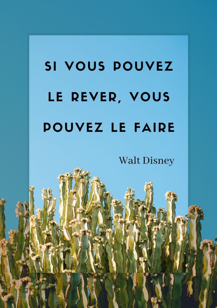 Voici une citation très connue de M. Walt Disney. Ce dicton rappelle que nos objectifs ne sont jamais irréalisables (il y a un peu de limites quand même) et que si des personnes y sont arrivés avant, pourquoi pas nous ?